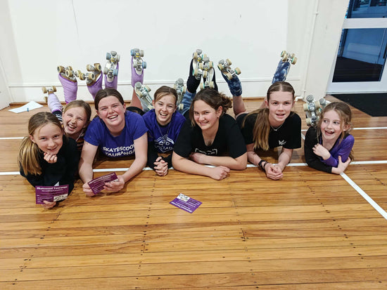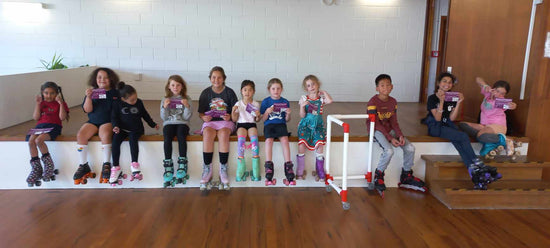 First, we teach how to be safe on roller skates, how to fall and get up safely. We have lots of skills, drills and games to push them to the next level.
